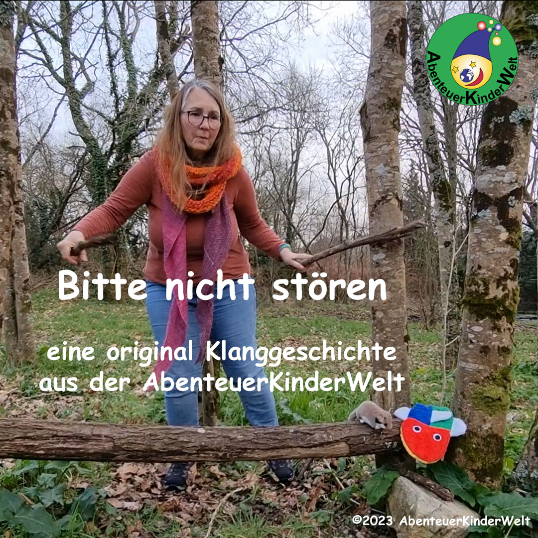 Zu Beginn des klingenden Spiels dürfen die Kinder mit ihren Stöcken ganz laut klopfen. Dabei hält sich die Begleitperson die Ohren zu. Ist eine Gartenschläfer-Figur vorhanden, dieser die Ohren zu halten. Dann wird die Geschichte gesprochen.