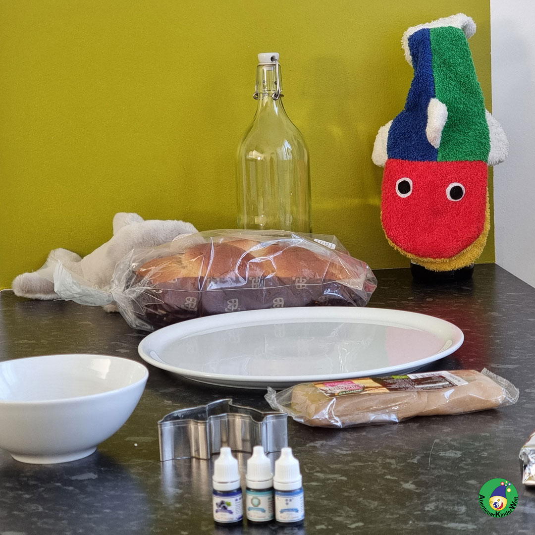 Die Kinder dürfen das Marzipan einfärben und auf Backpapier ausrollen.