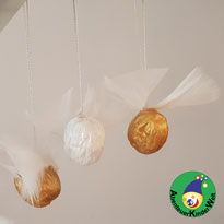 Die „Fliegenden Nüsse“ können einen hängenden Adventskranz schmücken, als Tannenbaumschmuck verwendet werden oder sie hängen einfach nur an einen dekorativen Zweig.