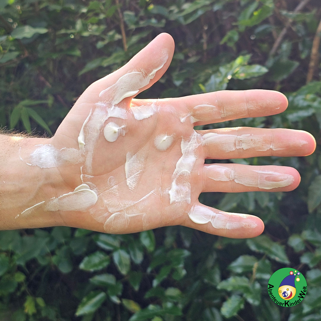 Natürlich kannst du, wenn du Cremefarbe verwendest, auch noch ganz andere Malflächen finden. Dann einen Waschlappen und ein Handtuch bereitlegen, wenn es gar zu glitschig wird.