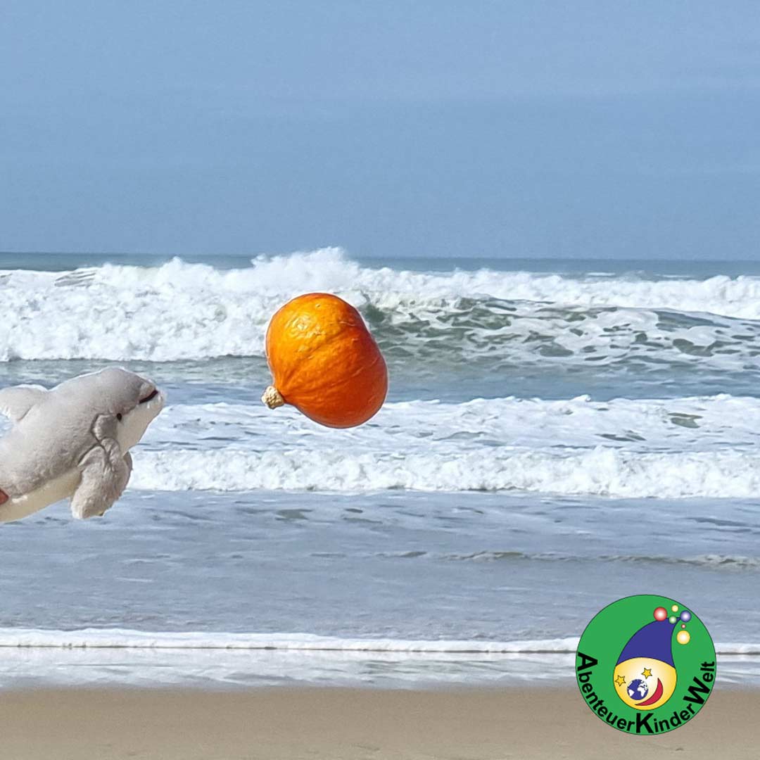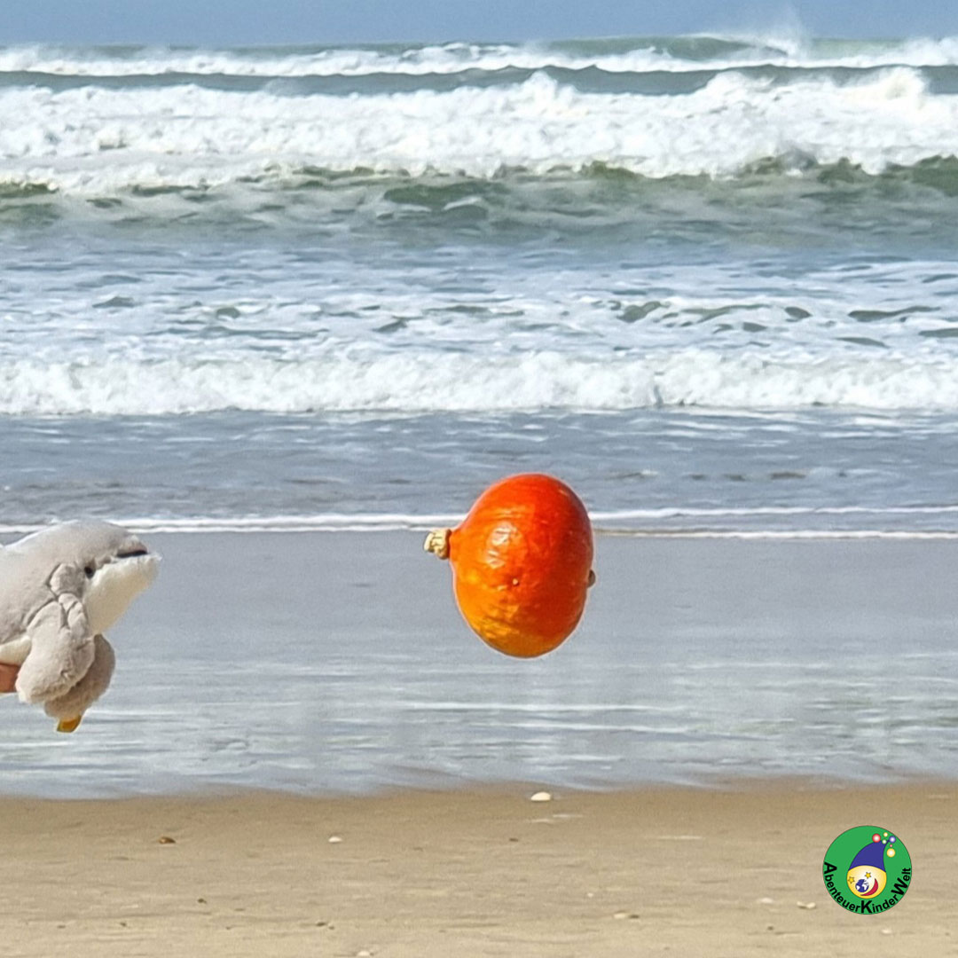 Die Hälfte der Kinder bekommt einen Kürbis und legt ihn sich als Krone auf den Kopf. Damit spazieren sie durch den Raum und versuchen immer mal wieder, die Kürbiskrone ohne Festhalten zu balancieren.
