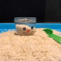 Schüttaktionen sind immer ein großer Spaß für die Kleinen. Und wenn dann auch noch so ein cooler Schneemensch entsteht, gibt es kein Halten mehr. Einfach und unkompliziert ist diese Aktion auch geeignet um Wartezeiten zu überbrücken (z.B. Heiligabend) oder eine kleine Verschnaufpause für Erwachsene zu ermöglichen (Zeitunglesen, Kaffeetrinken, Homeoffice). Das schlimmste was am Ende passieren kann ist eine Runde Staubsaugen. Wer ganz sicher gehen will, benutzt für diese Aktion ein geeignetes Plastikgefäß statt eines Glases.