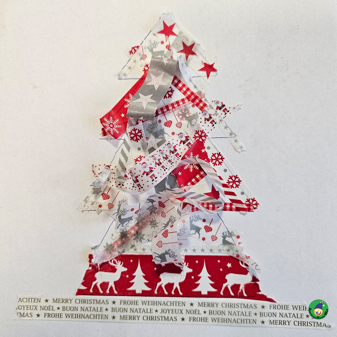 Die Kinder wickeln Dekobandstücke von der Rolle und reißen sie ab. Das können die meisten schon sehr gut alleine. Es ist eine schöne Übung für die Feinmotorik. Zum Starten dürfen natürlich auch ein paar abgerisse Bänder angereicht werden. Das Kleben ist auch eine schöne Herausforderung für die Hand-Auge-Koordination. Die Kinder schmücken den Baum nach und nach immer schöner. Manche kleinen MeisterSchmücker arbeiten sogar dreidimensional. Und die Bänder werden immer länger - da wird dann auch der eine oder andere Mensch gleich mitgeschmückt.