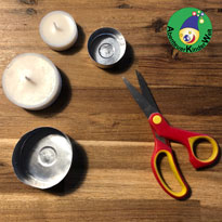 Mit einem Teelichtstern können die Kinder gemeinsam mit dem Erwachsenen die Benutzung einer Schere üben. Beim Schneiden müssen Regeln eingehalten werden und diese können die Kinder bei dieser Aktion wunderbar einüben. Wie hält man eine Schere? Darf man damit herumlaufen? Bleibt die Schere immer offen? Wo müssen die Finger hin? Wie funktioniert das Schneiden?
