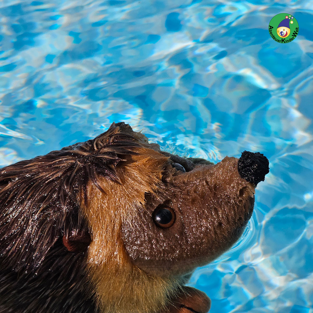 Der Igel ist im Olympiafieber und versucht sich im Schwimmbecken. Ob das eine gute Idee ist???