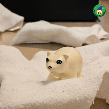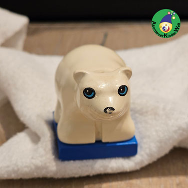 Am Tisch gespielt macht es Spaß, ein bis zwei Eisbärbilder an Stöckchen geklebt zur Geschichte zu bewegen oder mit Eisbärfiguren zu spielen.