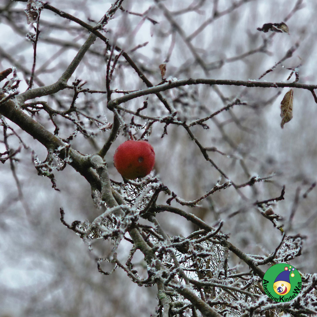 Besonders lecker schmeckt der Apfelpunsch nach einem Spaziergang an der frischen Luft. Vielleicht ist es so kalt, dass du mit deinem Kind überall Frostäpfel entdecken kannst. Es ist gut für die Vögel, wenn über den Winter noch ein paar in den Bäumen hängen. Wie gut die Äpfel den Vögeln schmecken erkennst du an den herausgepickten Stellen und wenn du ganz viel Glück hast, könnt ihr sogar einen Vogel beim Festmahl beobachten.