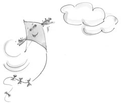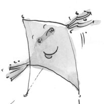 Das Kind erobert mit seinem Drachen den ganzen Raum - das ist ein schönes Bewegungsspiel zum Ankommen, nachdem man draußen unterwegs war. Die Kinder spüren die engeren Grenzen des Drinnens und können sich darauf einstellen, dass ihr Bewegungsradius in den Innenräumen kleiner ist als draußen.