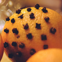 Durch den Orangensaft, den die Nelken aufsaugen entsteht ganz schnell ein warmer heimeliger Duft und so eine Nelkenorange auf einem Dekoteller mit anderen weihnachtlichen Schmuckstücken schafft gleich eine effektvolle Deko und eine weihnachtliche Stimmung.