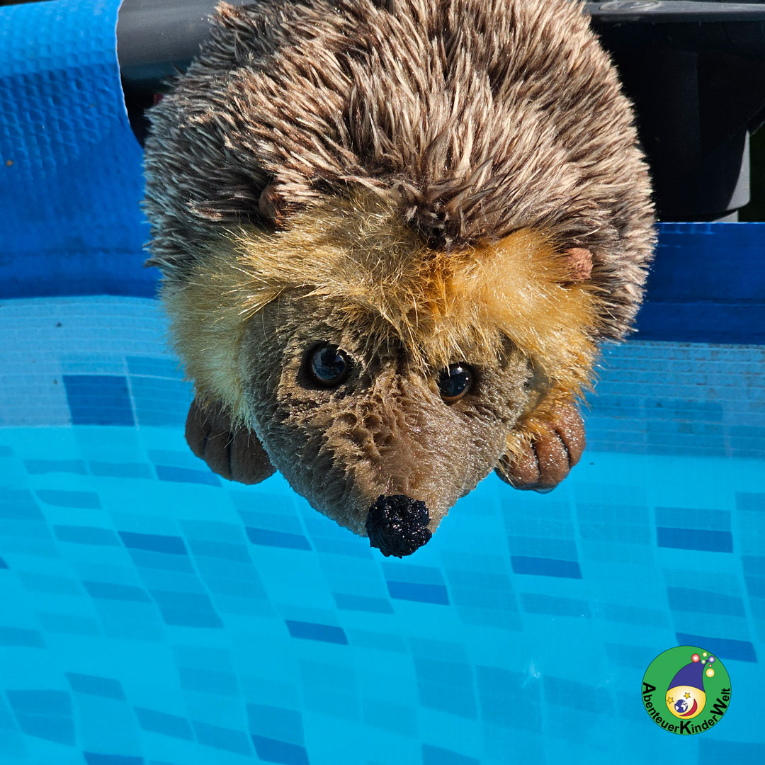 Der Igel ist im Olympiafieber und versucht sich im Schwimmbecken. Ob das eine gute Idee ist???