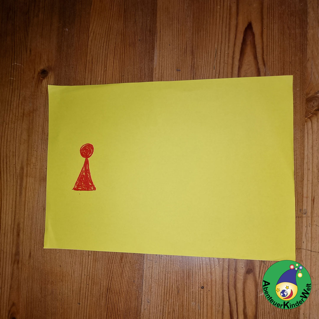 Die Kinder malen mit einer beliebigen Farbe ein Dreieck auf dessen Spitze ein Kreis platziert wird. Dabei bemerken sie vielleicht, dass diese Figur einem Spielkegel sehr ähnlich sieht.