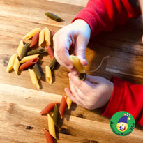 Tastsinn, Hand-Auge-Koordination, Feinmotorik und Kreativität fördern - MeisterWerken: Nudelgirlande