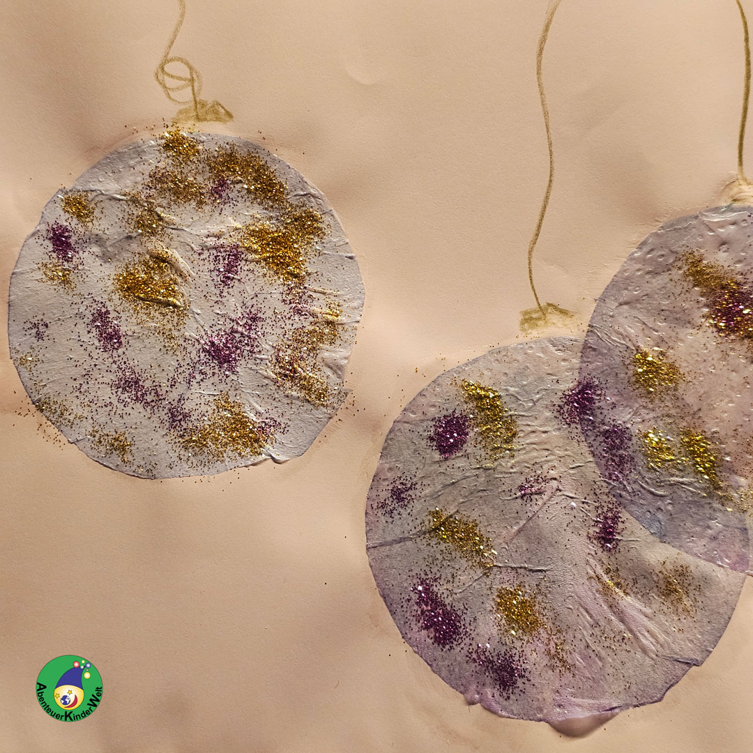 Mit Naturfarbe gefärbt und dann verzaubert. So entstehen glitzernde Weihnachtskugeln.