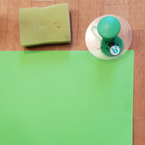 Ein Schwammtuch in der Größe eines Metalldeckels zuschneiden, in den Deckel legen und mit Farbe beträufeln.