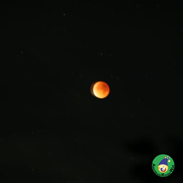 Die Malgeschichte auswendig sprechen und schon kann der Vollmond oder hier bei unserem Beispiel der "Blutmond" aufs Papier gezaubert werden. Die Geschichte solange wiederholen, bis der Mond zur Zufriedenheit der kleinen Künstler ausgefallen ist. Wie auf den Fotos kann er auch mal etwas wolkiger werden oder einen Zwilling haben.