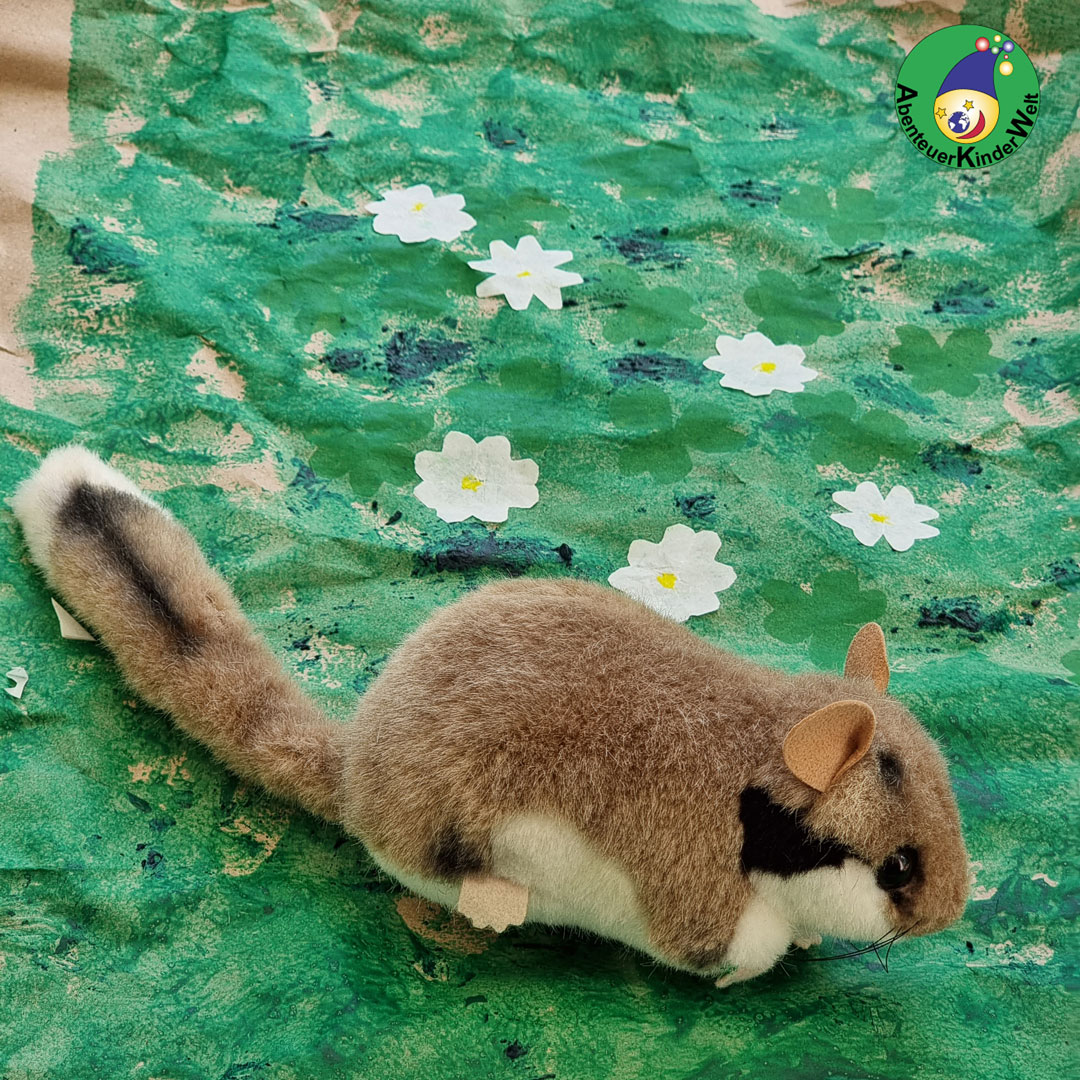 Der Gartenschläfer zeigt dem Maulwurf heute seine Welt im Wald. Da der Maulwurf nicht klettern kann, bleiben sie zusammen auf dem Waldboden. Der Gartenschläfer hat dem Maulwurf ein wunderschönes Bild vom Waldboden gestaltet und auch gleich ganz besonders groß gemalt, weil der Maulwurf nicht so gute Augen hat. Ob der Maulwurf dafür wohl Platz in seiner Höhle hat?