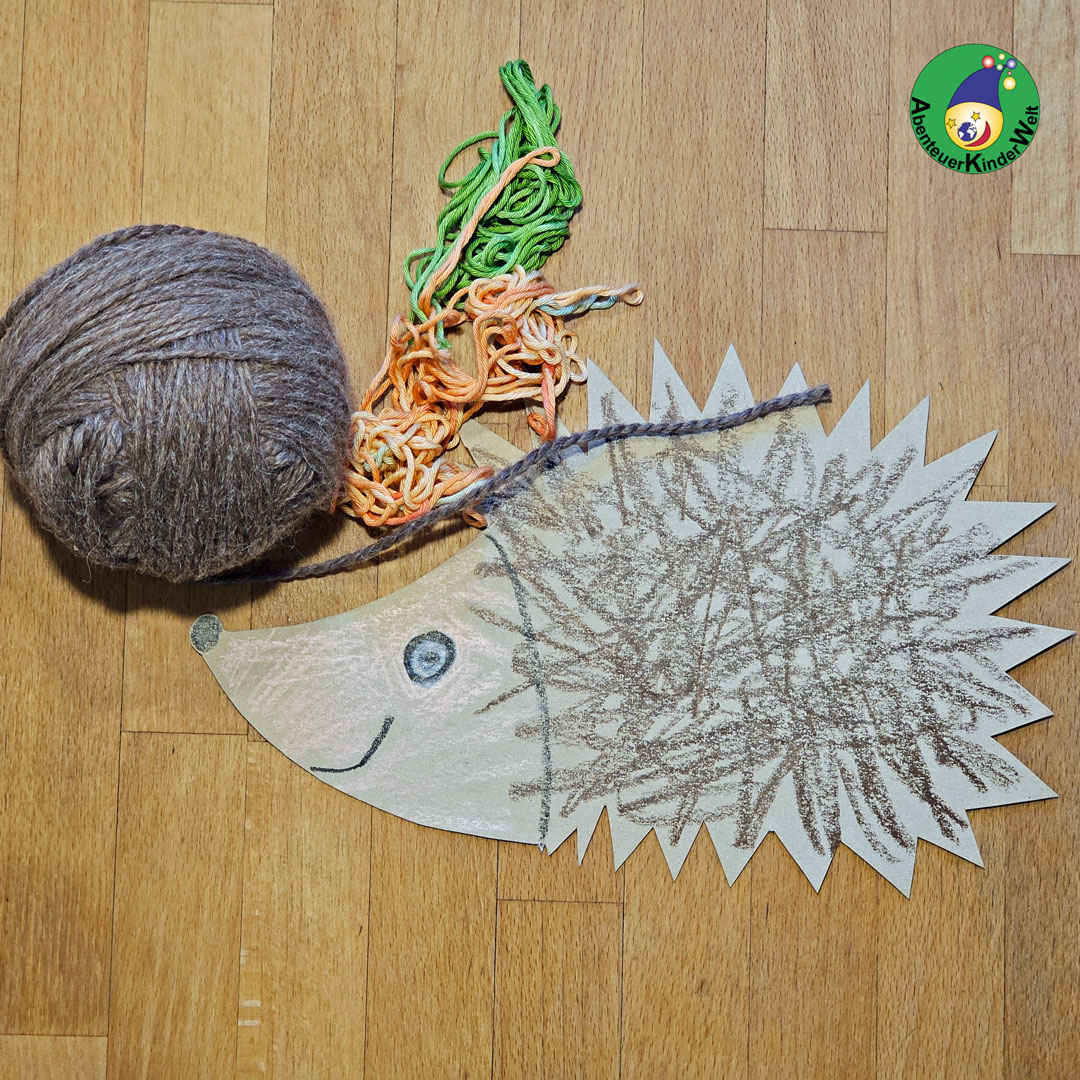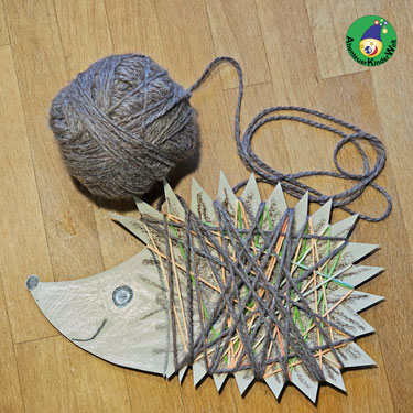 Die Kinder bekommen einen Wollfaden und wickeln den Igel damit warm ein. Es können auch mehrere Wollfäden nacheinander um den Igel gewickelt werden. Je stacheliger der Igel, desto besser halten die Wollfäden.
